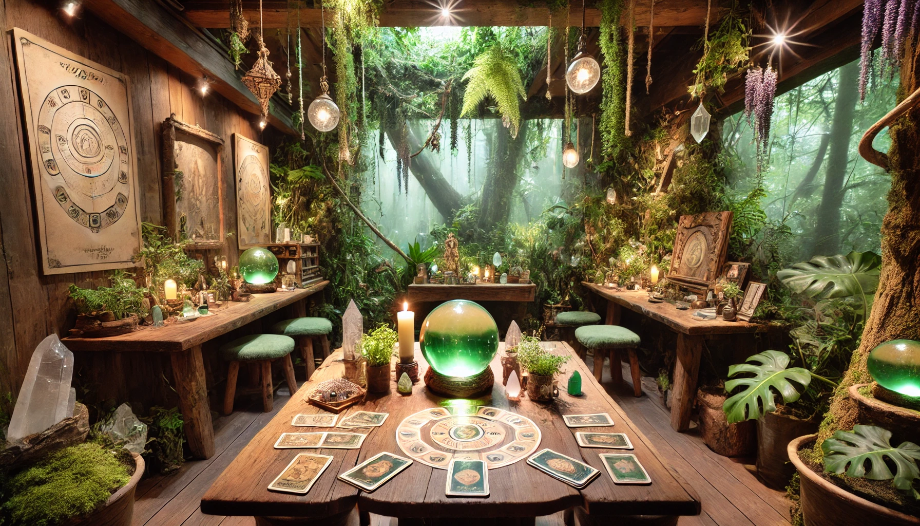 森の静寂の中で、星々の導きを通じて深い気づきと癒しを得られる占いカフェ。